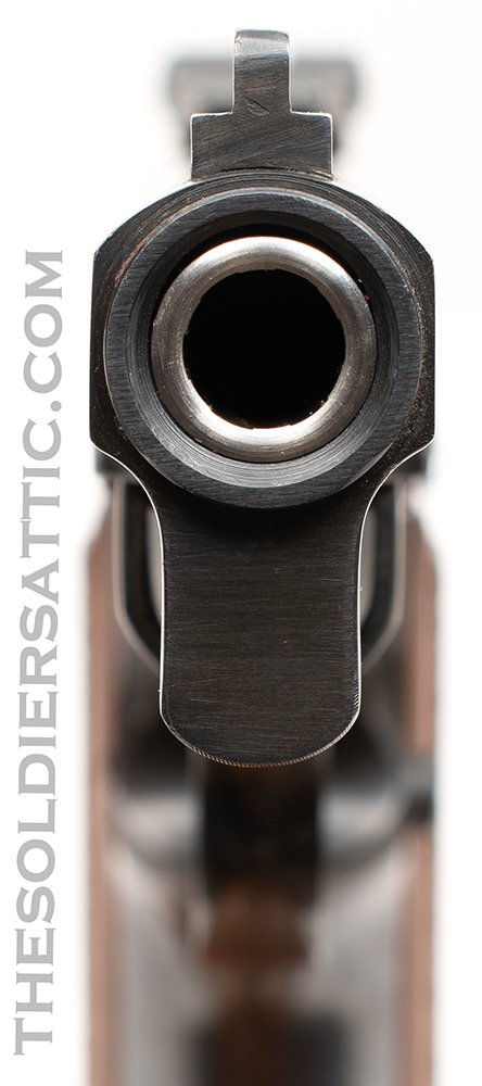 Overall condition of this Browning Hi-Power Sport is excellent with light handling marks on the backstrap. The grips show very little wear, and the bore is bright with excellent rifling. Some use marks are present on the barrel, near the chamber, and shooting residue remains on interior parts. This is a very attractive, uncommon Hi-Power that will fit nicely into a Browning collection or shooter’s inventory.