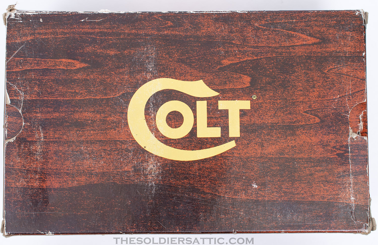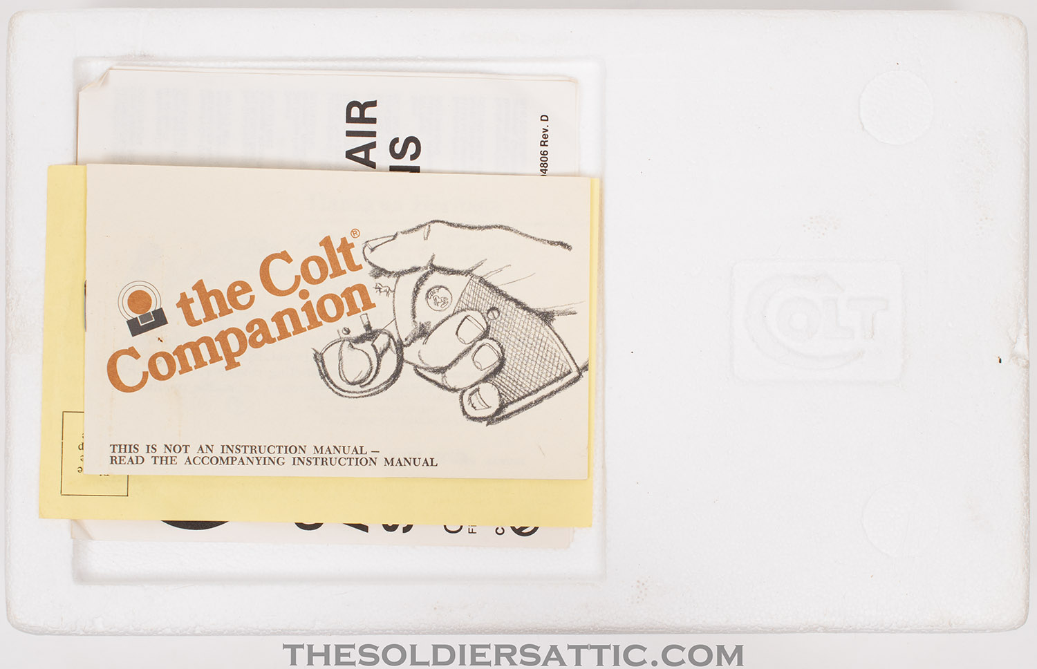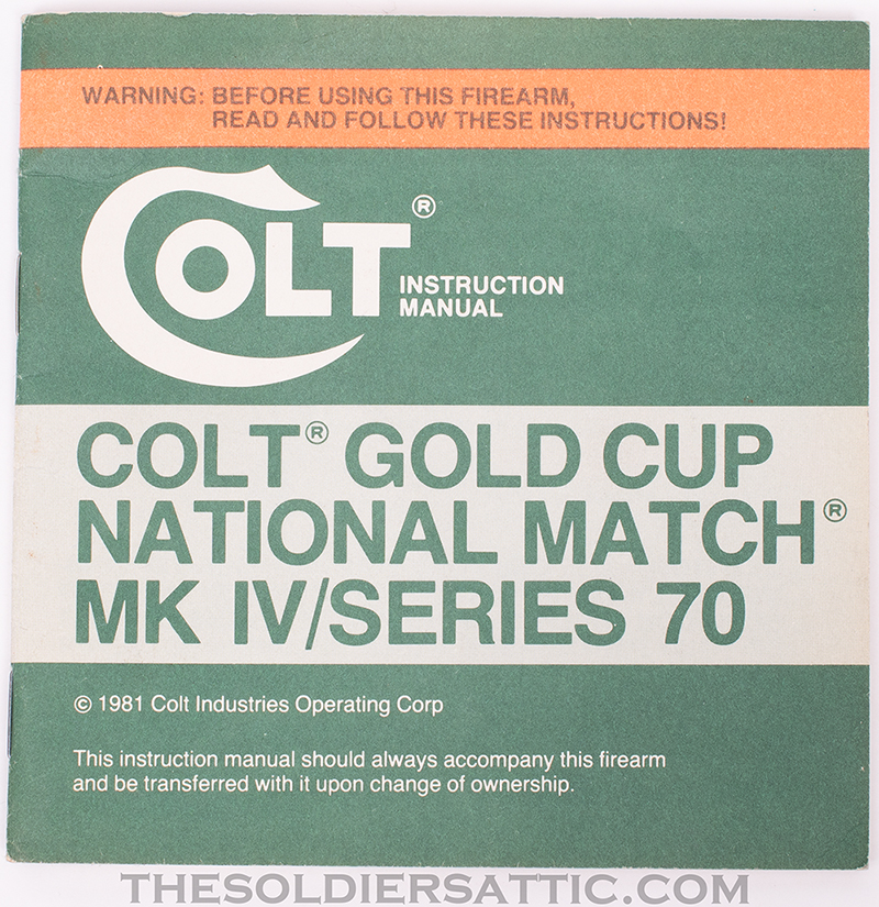 This Colt MK IV Series 70 Gold Cup National Match pistol has been shot and remains in good condition with excellent finish and very minor handling marks on the grips and front grip strap. Bore is bright with excellent rifling. Comes with original box that is in structurally sound condition with some storage wear. The sticker is clearly marked with model, barrel, finish, and serial number information. Includes original paperwork and allen wrench as seen in the pictures.