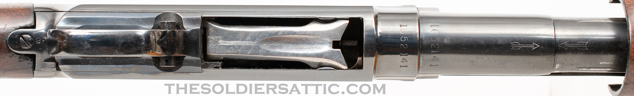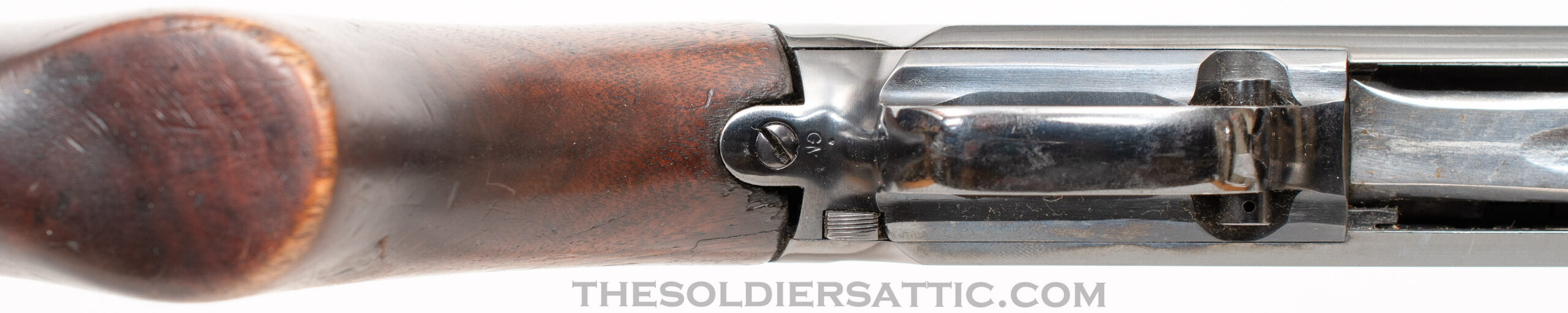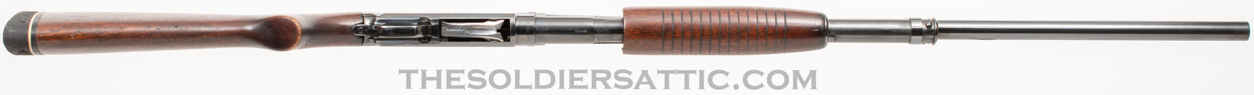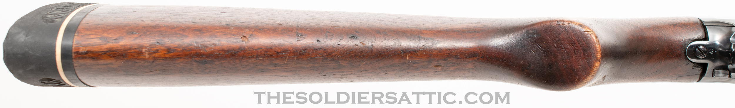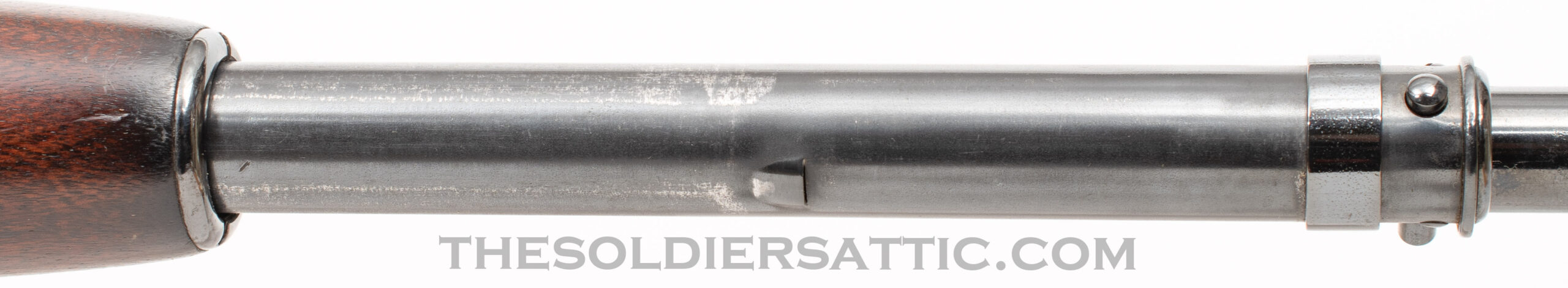 The blue finish is in excellent condition with some wear along the slide and left leading edge of the receiver. All amrkings are sharp. Both the wood forearm and buttstock carry handling dings and dents and there is some high point wear along the bottom of the pistol grip. A small chip in the wood exists at the rear of the trigger guard. Both wood components have no cracks. The action functions as intended. The bore is clean, bright, and smooth with no pitting or oxidation.